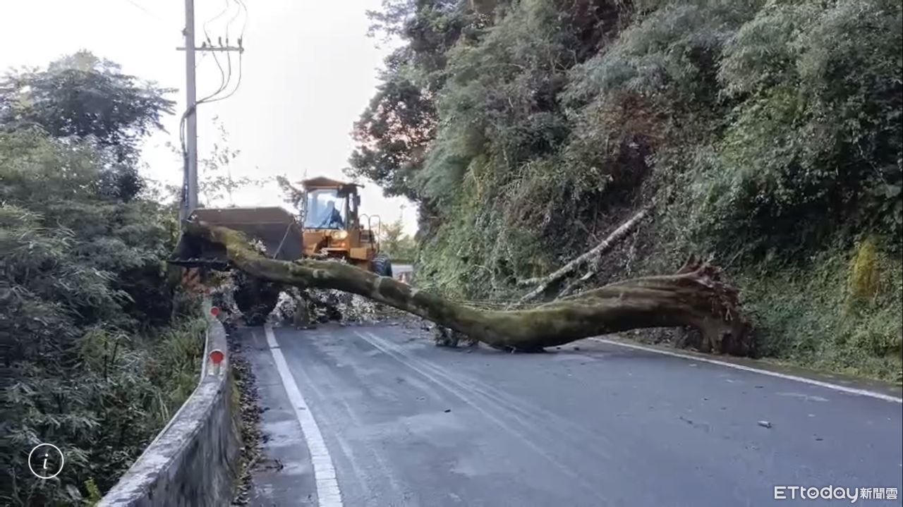 台中市和平警分局表示,台8線64.5公里處今天發生樹木倒塌,樹木高約10公尺,樹根約有2成人手臂環抱大小,佔據由谷關往梨山方向車道。