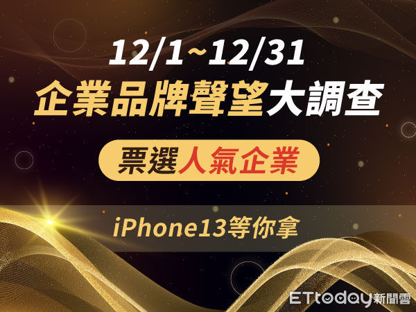 台灣各行各業正面臨數位化浪潮的洗禮,或者處於世代接班的轉型中,作為本土媒體接觸率第一的《東森新媒體ETtoday》,在成立10周年之際,特別推出「2021企業品牌聲望大調查」,除作為消費者的參考,也為社會共好盡一份力量。活動期間自即日起至2021年12月31日24點止,邀請所有朋友一起票選心目中的優秀企業,並且還有機會將「iPhone13」帶回家!