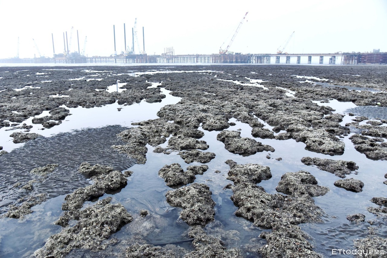 ▲桃園大潭藻礁,後方為中油天然氣三接棧橋。(圖/記者屠惠剛攝)