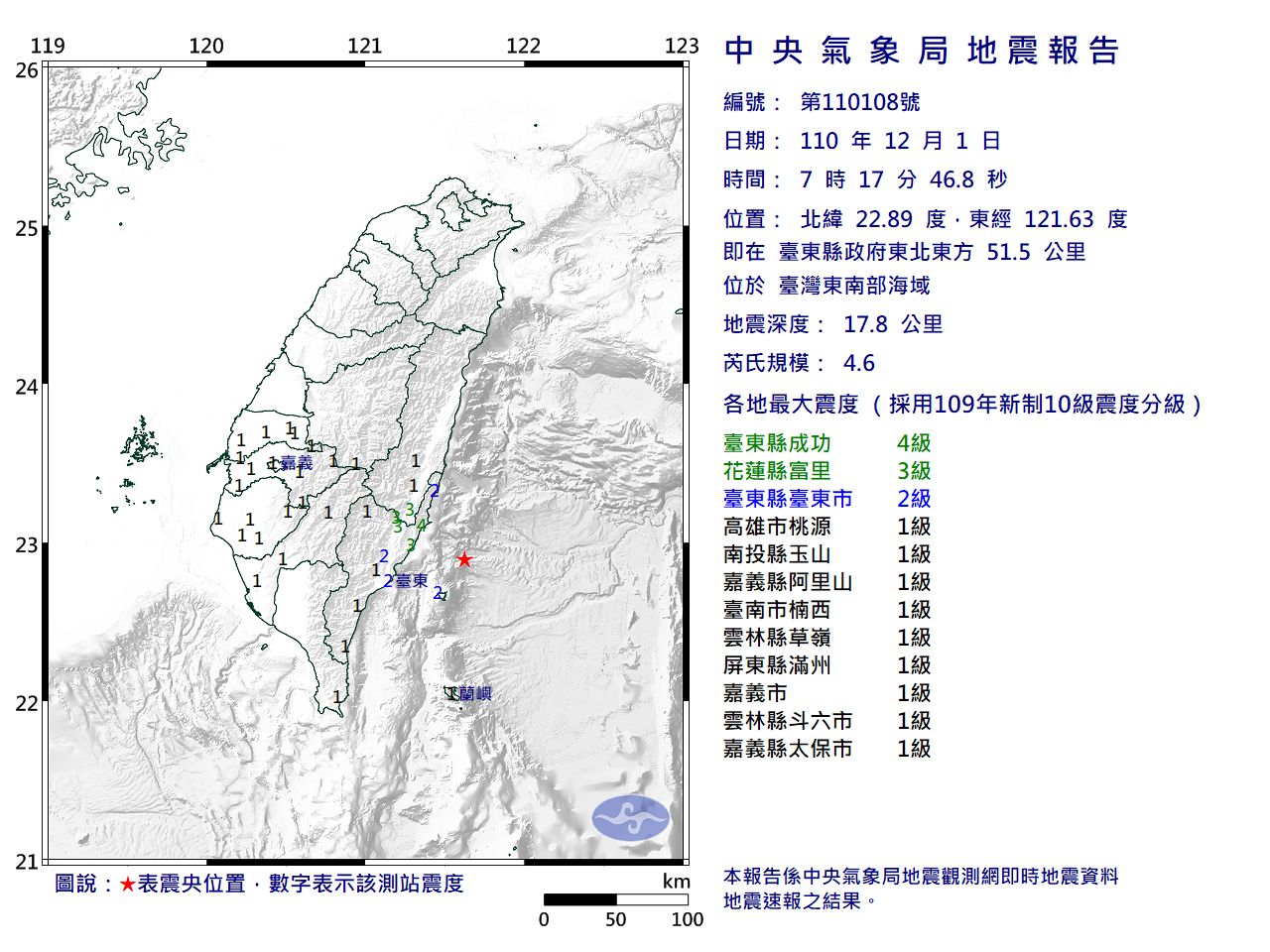 發震時間:110年12月01日07時17分46秒