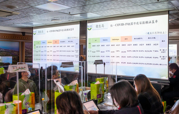 鄭市長表示,截至11月30日止,桃園市COVID-19疫苗第一劑接種188萬6,730劑,人口涵蓋率為83.02%;第二劑接種127萬9,320劑,人口涵蓋率達56.29%。另外,桃園市校園流感疫苗計畫預計12月8日完成,全市286校共計19萬5,435位學生同意在校接種流感疫苗,目前已有253校18萬3,842位學生完成接種,接種率達94.07%。