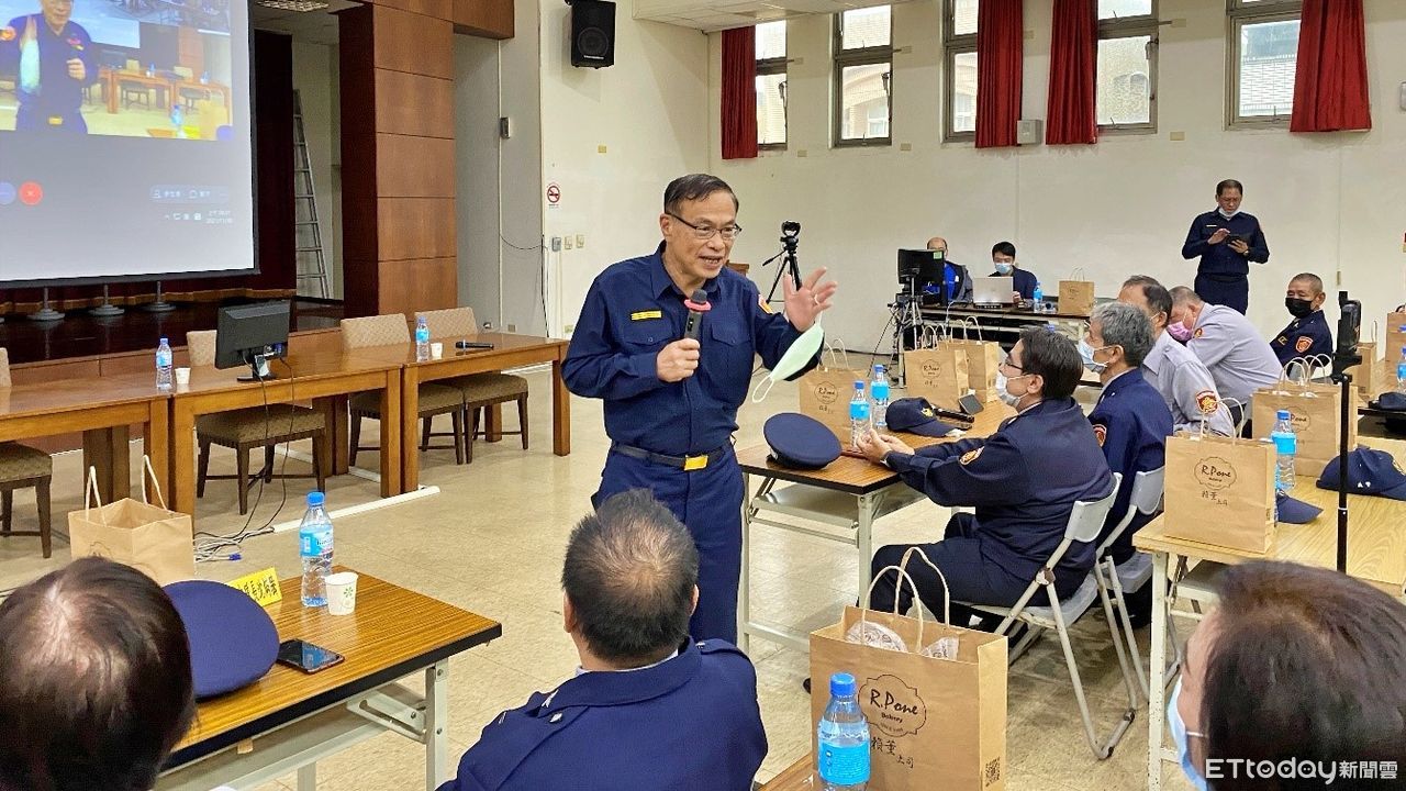 ▲瑞芳義警常年訓練,新北警長黃宗仁宣導「LINE傳播神功」護治安。(圖/記者郭世賢翻攝,下同)