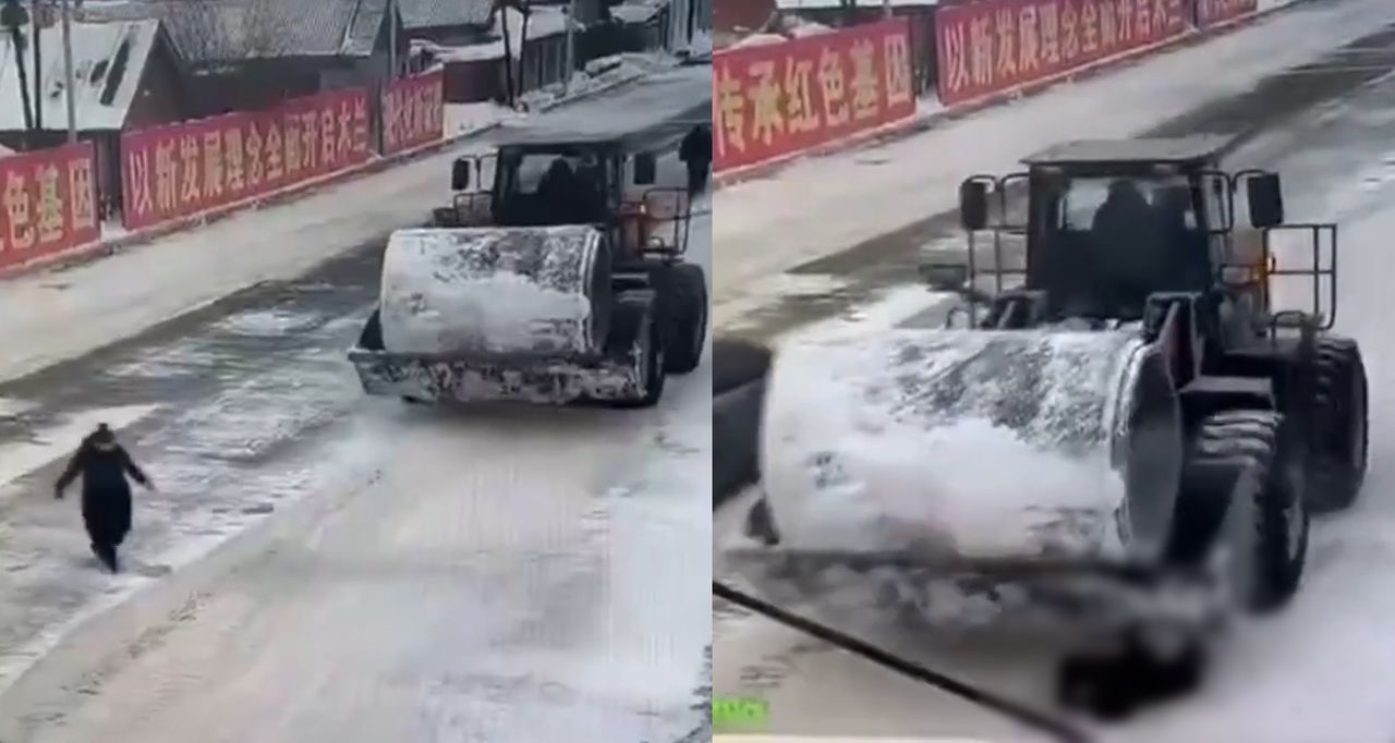 疑似因為鏟雪車前方大輪擋住駕駛視線,當欒女穿越馬路時,駕駛疑似也要閃過她,沒想到等阿姨慢下來行走的同時,剷雪車的車頭也正好對著她,接著直接將她整個人撞倒在地,下秒意外輾過。