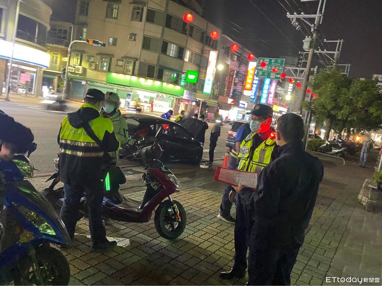 ▲台南市永康分局1日晚上結合監理站、環保局,在大灣國小周邊道路執行聯合稽查取締改裝汽機車,以維護交通秩序與安寧。(圖/記者林悅翻攝,下同)
