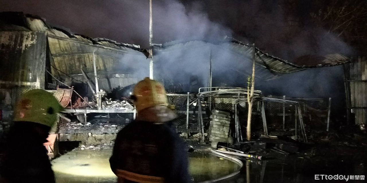 ▲三重果菜市場旁的一間廠房氣爆引發火勢,波及5處店面受災、20多輛汽機車變成廢鐵。(圖/記者陳雕文攝,下同)
