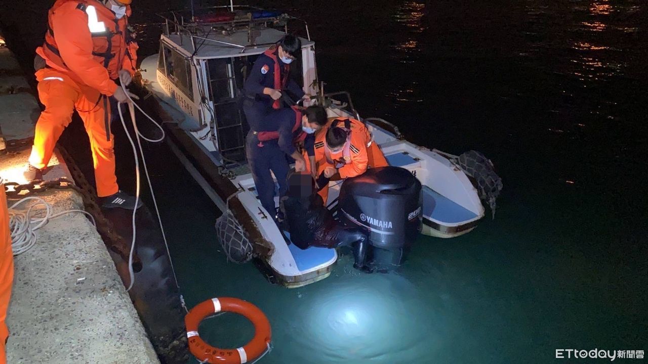 ▲黑衣女深夜在高字塔落海被海巡人員救起。(圖/記者陳宏瑞翻攝)