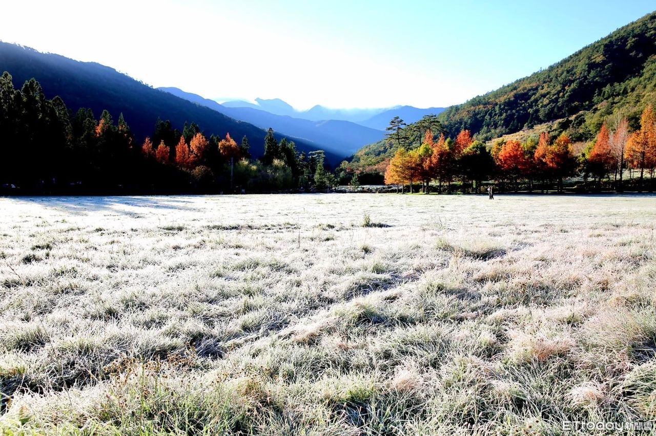 ▲武陵農場被撒糖霜,雪白冰霜大地宛如童話夢幻場景。(圖/武陵農場提供)