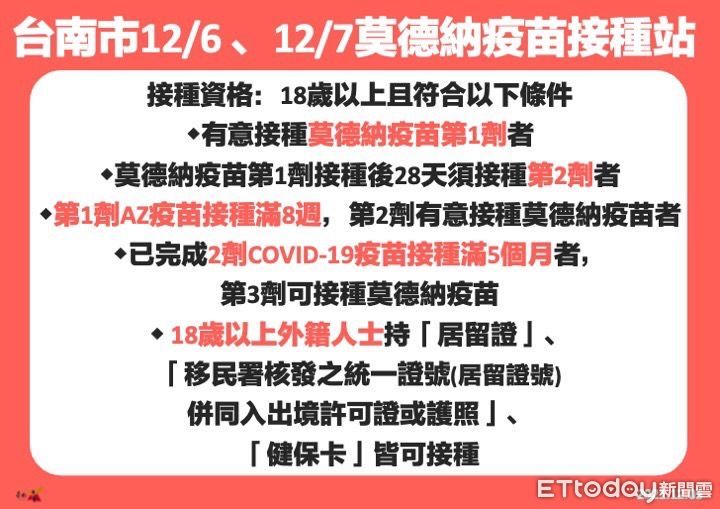 ▲台南市6、7日7處開設莫德納疫苗接種站,不用預約也可打疫苗拿禮物。(圖/記者林悅翻攝,下同)