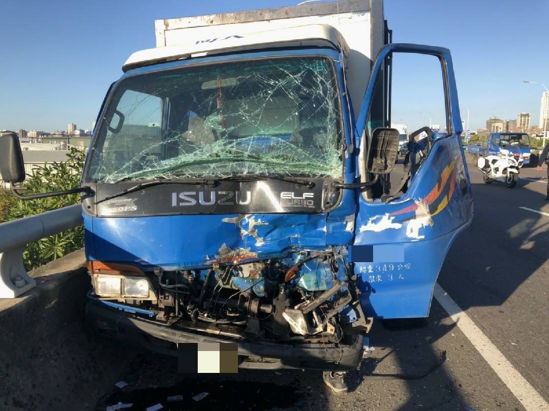 ▲環中快速路有5車連環撞,一名貨車司機受困車內。(圖/民眾提供)