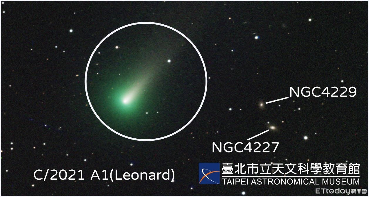 編號C/2021 A1(Leonard,雷納德)是今年被天文界發現的第一顆彗星,台北天文科學教育館指出,雷納德彗星在將近一年後,已經從木星軌道附近運行到最接近地球和太陽的位置,12月12至14日是最亮時間,亮度可望升高到4等左右,接近肉眼可見程度,也是今年最亮的一顆彗星,錯過之後,大約8萬年後或許有機會再看見它。