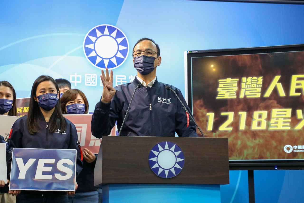 攸關食安和環保等4大公投,將於12月18日正式投票。國民黨8日召開「台灣人民怒火 1218星火燎原」記者會,黨主席朱立倫領軍多位「青年民主戰隊」的年輕朋友們發出全民動員令,朱立倫指出,1218公投就是人民怒火延燒,即將燒向網軍治國的民進黨政府,讓四項公投都同意。