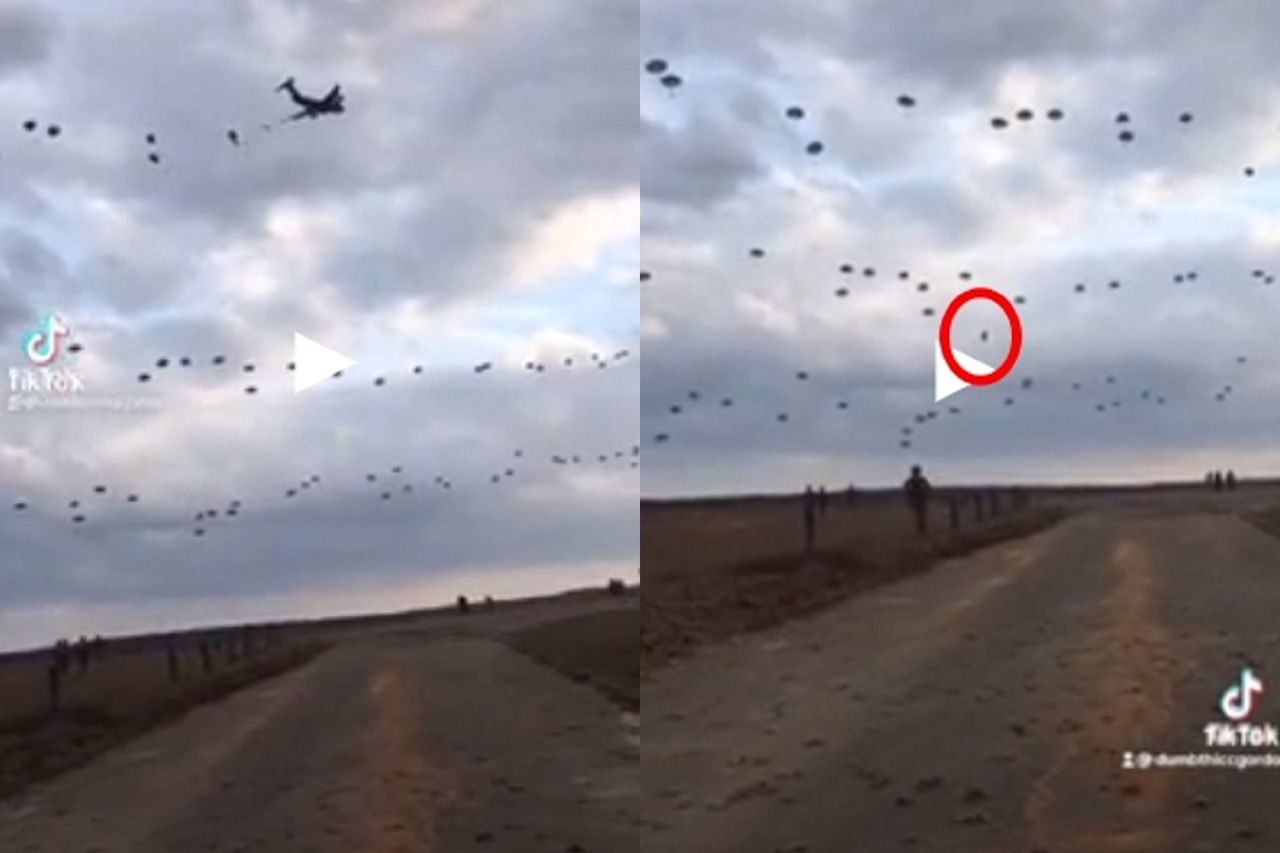根據《Task and Purpose》報導,一位美國網友在TikTok分享這段影片,引發熱烈討論以及轉傳,影片中,1架C-17運輸機正將大批傘兵放下訓練,他們身上穿著最先進的降落傘設備「T-11」,可以看到幾乎所有士兵都是以大約每秒5.8公尺的速度緩緩落下,除了一位以高速持續下降。