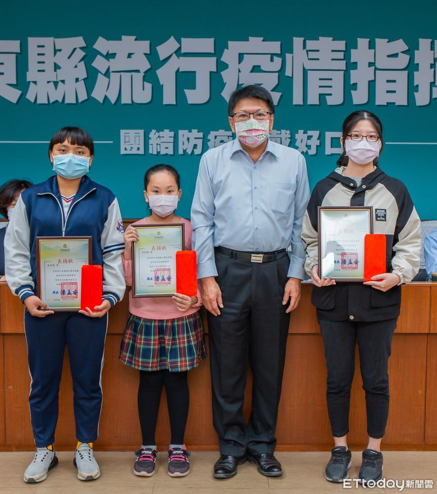 ▲縣長潘孟安頒發孝行獎給得獎3位同學 。(圖/屏東縣政府提供)