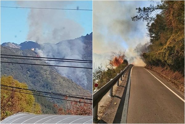 南投縣合歡山台14甲線19.5K翠峰路段,9日上午11時46分左右傳出邊坡火燒山!現場火煙波及路面,仁愛警消、埔里工務段等單位獲報後緊急趕往現場處理,將視情況實施交通管制,同時呼籲遊客和民眾暫勿開車前往,若遇救援車輛請儘速讓道,以策安全。