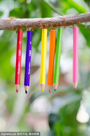 編織蟻(Weaver Ant,另譯織葉蟻)展現牠們的神奇超能力!這些螞蟻看起來像在創作藝術壯舉,舉起的彩色鉛筆重量,是自己體重的幾千倍。