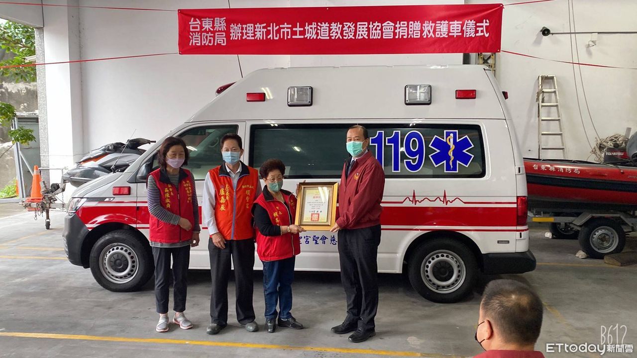 新北市土城道教發展協會捐贈成功消防分隊高頂救護車,台東縣消防局於成功大隊辦理救護車捐贈儀式,由新北市土城道教發展協會(順聖宮主委盧嘉辰代表)捐贈救護車,期盼該車能發揮最大效益,提升成功地區執行緊急救護服務之品質。