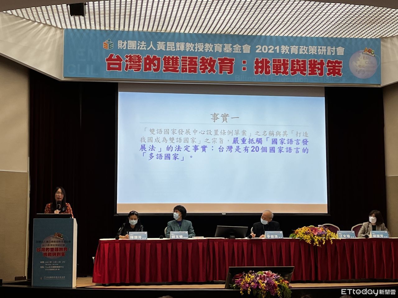 2030年打造台灣成為雙語國家是政府既定政策,為凝聚共識及提出建議,黃昆輝教育基金會今天舉辦「台灣的雙語教育:挑戰與對策」研討會,邀請教育部長潘文忠致詞,也邀請教育界學者、專家及實務工作者參與,採實體與線上混成方式進行討論。
