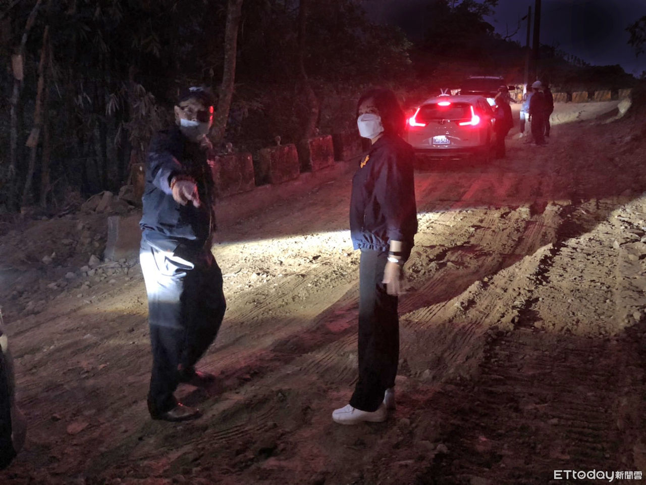 當同仁正在努力排除狀況的時候,我也在夜幕低垂的泥土路上,與正在努力施工的工程團隊步行了一小段,為他們加油打氣,也更深刻感受到一條順暢的交通對居民有重要。