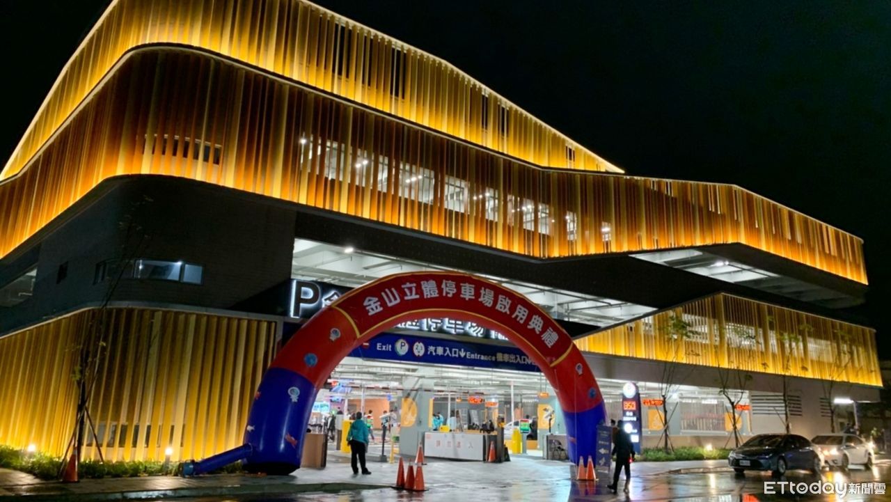 金山立體停車場12日舉辦啟用典禮,典禮上特別以閃耀的燈光秀呼應立體停車場,神秘海岸火山岩石染橘褐紋色為發想的建築造型,工程總經費4億859萬元,為地下一層、地上四層,樓層採挑高設計,有350個汽車位、100個機車位,工程於今年9月完工,並將於13日中午12時起試營運,開放免費停車。
