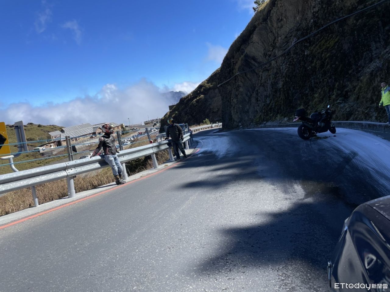 ▲合歡山水晶宮前路段結冰,12月起造成多起機車打滑自摔意外(下同)。(圖/民眾提供)