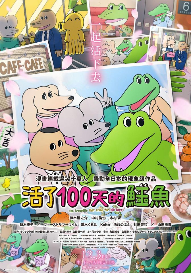 在櫻花盛開的3月,大家約好要一起賞櫻,卻遲遲看不見鱷魚的身影。擔心鱷魚的老鼠將櫻花的照片傳給夥伴們,卻顯示在鱷魚掉在路上且螢幕破裂的手機畫面中。到賞花日為止的100天內,鱷魚過著再平凡不過的生活。賞花日的100天後,櫻花樹上長出綠苗,鱷魚的好友們無法面對與鱷魚之間的回憶,彼此漸漸失去了聯繫……。