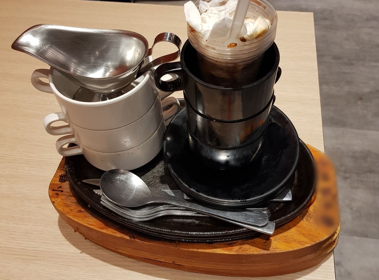 原PO在臉書社團「爆廢公社」貼出照片,從中可見鐵板、餐盤、碗碟,甚至是餐具,不僅被一一堆疊整理好,還被用衛生紙擦得一乾二淨,連桌面都沒有髒汙,讓他不禁疑惑「到牛排館用完餐,離場前弄成這樣再離場的客人,用意何在?」