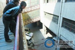 在學車過程中,可能是哥哥對摩托車操作不熟悉,失控的摩托車瞬間飛出平台。目擊民眾表示,他看到一男一女騎著機車,重重地摔落在樓下的水泥地上(見上圖/取自網路),鮮血順著兩個人的頭頂直流,旁邊是一輛車頭嚴重受損的黑色摩托車。
