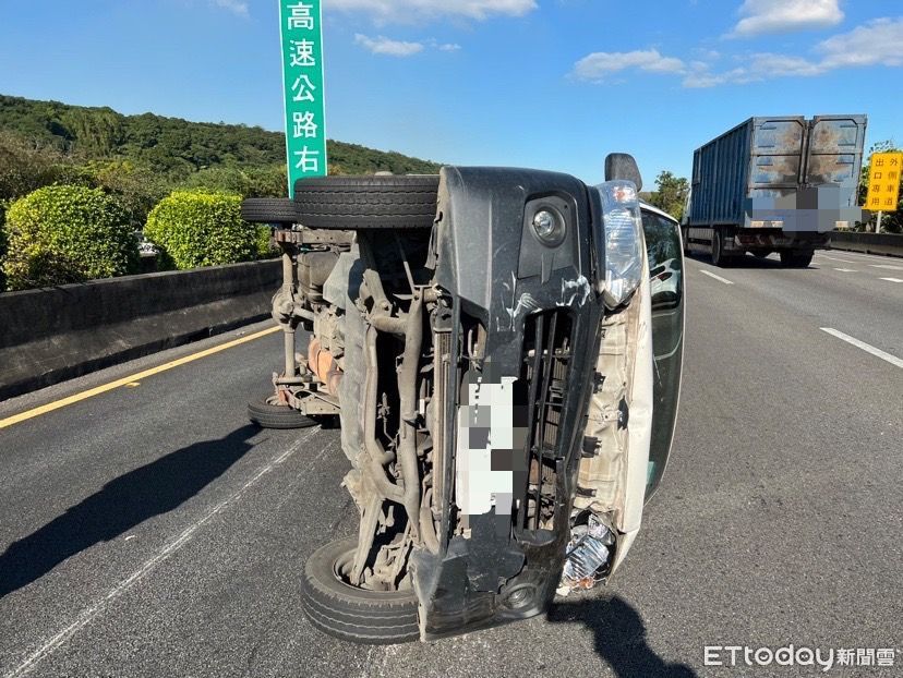 警方說明,15日下午1時31分接獲通報,國道三號北向55.9公里有事故,遂派遣巡邏車到場處理;經查,係陳姓男子駕駛小貨車行經該路段時,因操作不當,撞擊另一輛小貨車,導致車輛翻覆,右腿因此扭傷。警方表示,兩名駕駛人無酒駕情形,後續依規定調查處理。