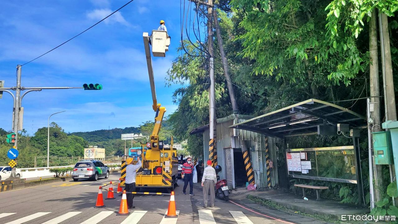 台電基隆區處人員指出, 3878戶停電約40分鐘,現場勘查發現是竹子傾倒壓到避雷器導致短路,還好李姓老伯沒有觸電,實在很危險,目前已查明原因,並不會對阿伯求償,也藉此呼籲民眾,從事任何工作,一定要遠離電桿,以免造成危險,或導致短路影響民眾用電。