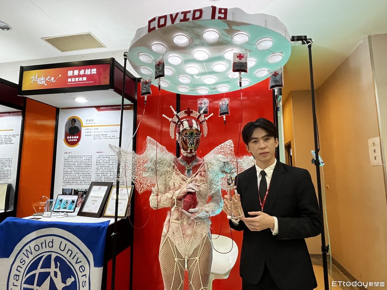 今年技職之光共29組、38人獲得表揚,獲獎者都是各領域的佼佼者,像是今年6月剛從環球科技大學畢業的劉權錦,參加今年7月共48國參加的第24屆世界人體彩繪節,勇奪第一名,其作品「歷史時刻Historical Moments」將疫情融入作品當中,以黑暗之際就是黎明即起之日,無論是醫療照護或社會關懷的暖心溫度,展現技職人卓越技藝與不凡魅力,超群表現讓世界刮目相看。