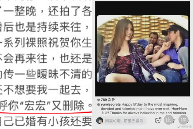李靚蕾在爆料文中提到「有一次商演跟她同場還不想要我一起去,然後她還發了關於你的ig,稱呼你『宏宏』又刪除。」這段引起微博網友注意,結果挖出BY2的Yumi過去確實曾經在IG發文,就是稱王力宏HomHom,再度掀起網友高度討論。