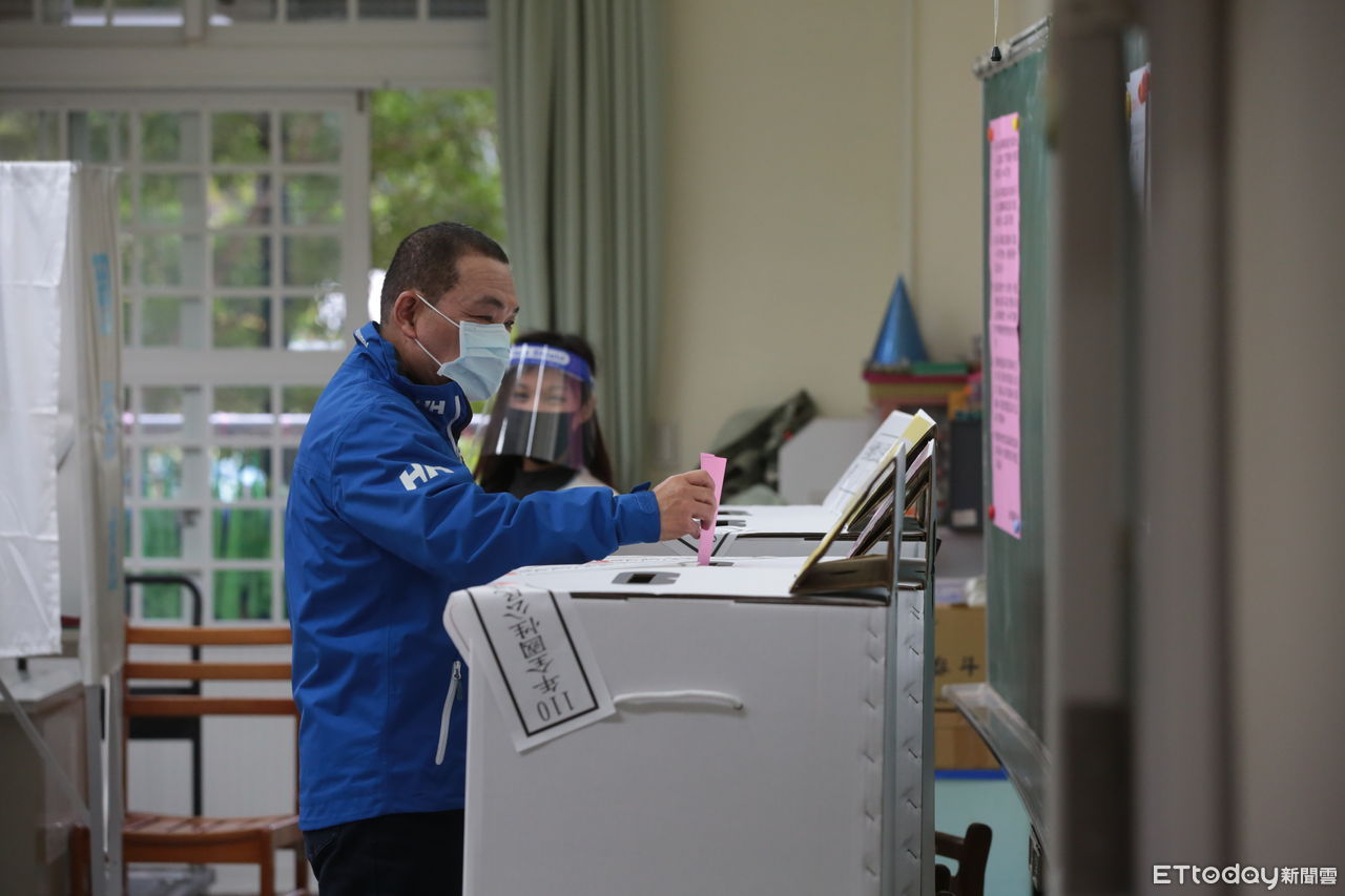 ▲1218四大公投,新北市長侯友宜一早便前往板橋區板橋國小投票。(圖/記者湯興漢攝,下同)