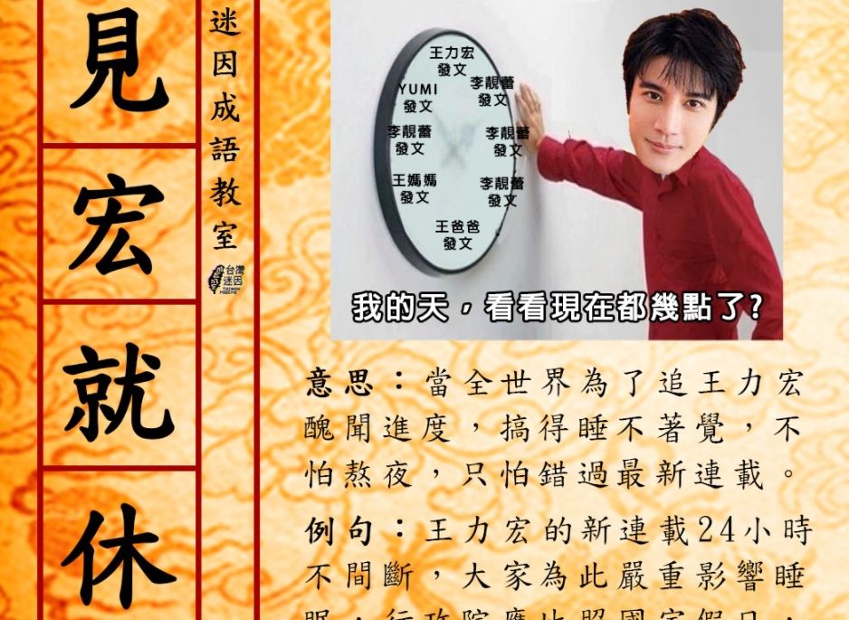 王力宏事件沸沸揚揚,即使相關人物的每篇聲明都上千字,網友仍當作連載小說一樣追不停,全台娛樂記者更哀聲連連。粉專台灣迷因 taiwan meme製作一張「見宏就休」的梗圖吸引上萬人朝聖,大家看了都好有共鳴。