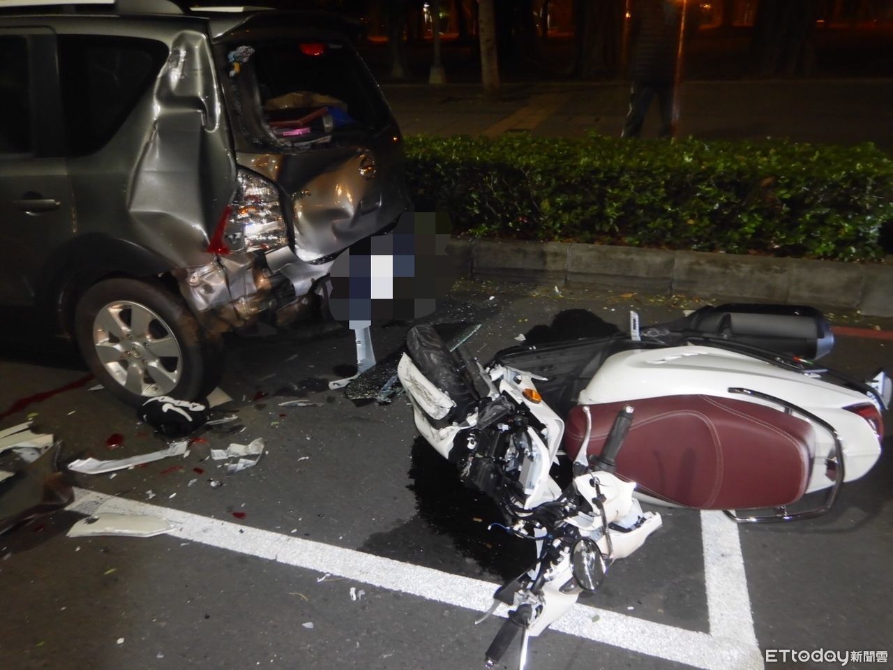 苓雅警分局福德派出所23日凌晨4時許獲報,苓雅區中正一路的國軍高雄總醫院前有交通事故發生,員警到場後,發現林男倒在路旁,鮮血直流,他的機車則撞得面目全非,而停在路旁的灰色轎車則是後方凹陷,初步判斷林男是沒注意到停在停車格內的轎車,直接從後方衝撞。