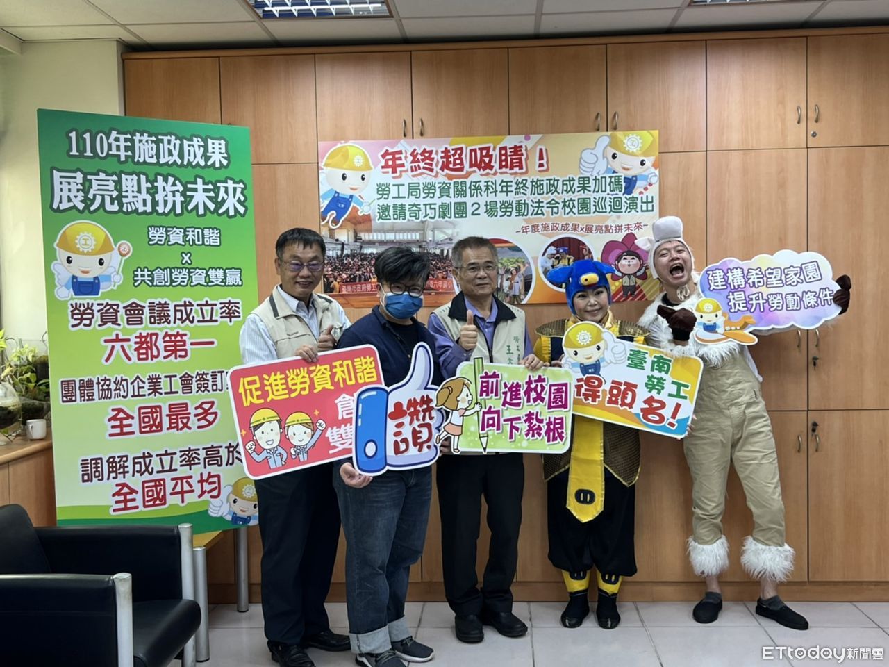 勞工局長王鑫基表示,今年在推動勞資關係業務上,勞工局從勞動法令紮根校園巡迴、建置勞資會議、大量解僱通報及輔導簽訂團體協約等各個面向著手,透過公民勞動意識的培養、輔導建立勞資溝通平台、維護勞工債權減緩大量解僱的衝擊及協助企業工會簽訂團體協約等方式保障勞動權益,促進和諧的勞資關係,展望111年勞、資、政三方攜手合作打造「勞資和諧、共榮共享」市民安居樂業的「希望家園」,使臺南市各事業單位勞資雙方更加和諧。