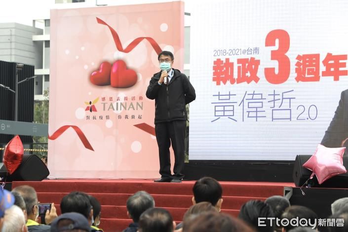 ▲台南市長黃偉哲迎來就職三週年,在永康區新總圖辦理「三年有成.防疫第一」感恩表揚活動,市長黃偉哲頒發表揚狀給參與防疫工作的人員表達感謝。(圖/記者林悅翻攝,下同)