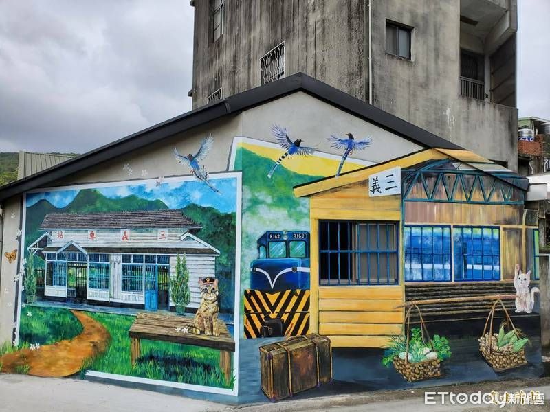 ▲三義舊車站南下候車亭重彩繪,不僅讓鄉親重溫舊時光,也能讓遊客前往打卡,變成新亮點。(圖/記者黃孟珍翻攝)