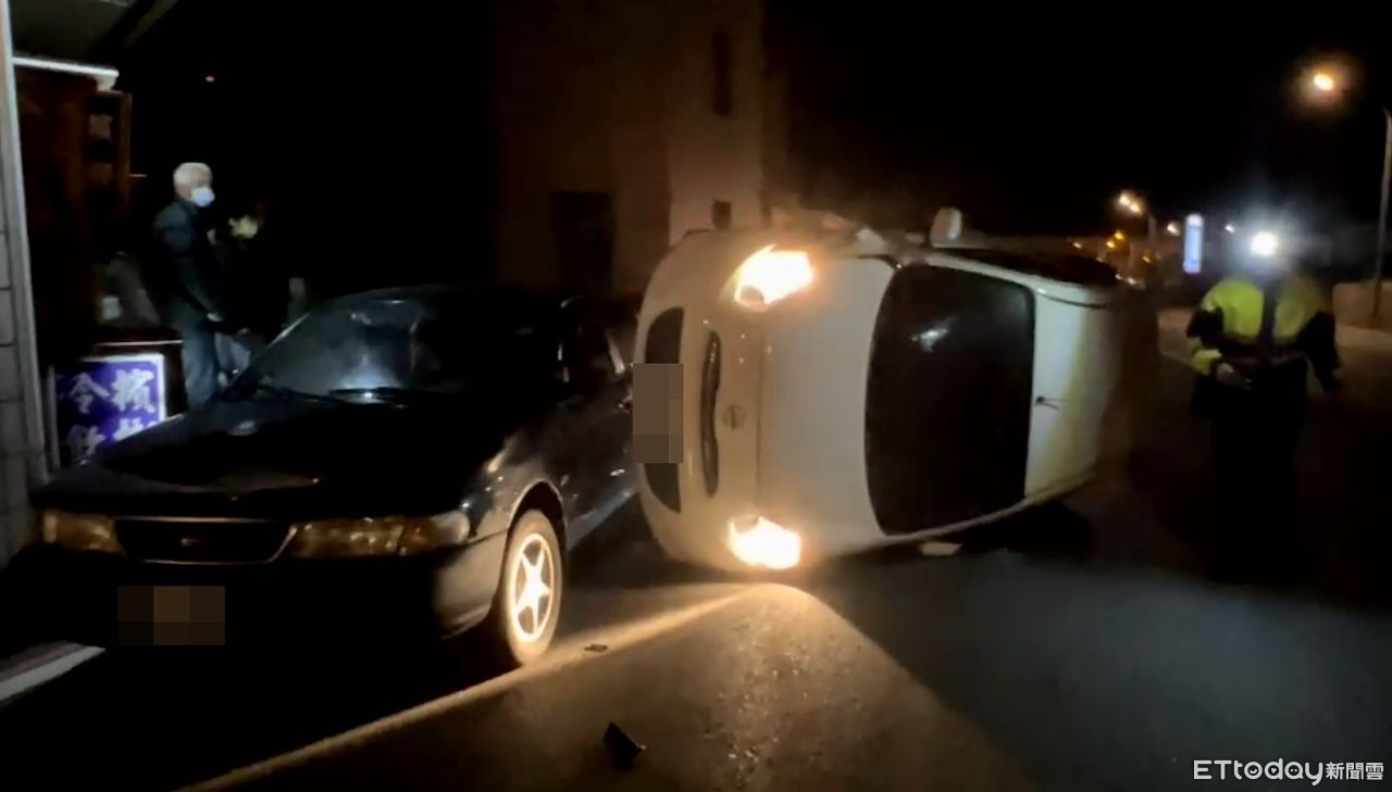 ▲李男與路旁臨停的自小客發生擦撞,車體90度翻覆。(圖/記者陳洋翻攝,下同)