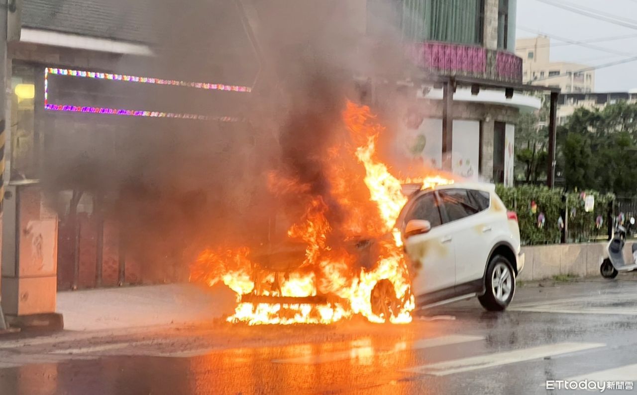 八德警分局廣興派出所所長翁翊芳指出,48歲的趙姓男子27日上午7時許開車上班,行經八德區長興路666號前時,突然察覺引擎處冒出濃煙,趙遂將轎車停放路旁下車查看,引擎處突然竄出大火,趕緊打電話向消防局求助。