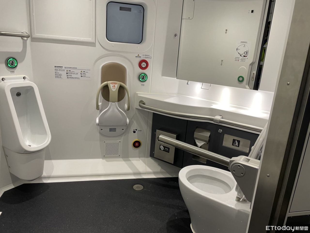 ▲台鐵EMU3000型城際列車多功能車廂的廁所開關較特別。(圖/記者李宜秦攝)