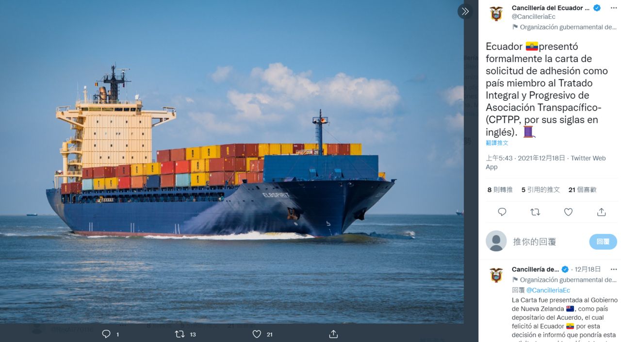▲厄瓜多外交部宣布,申請加入CPTPP。(圖/翻攝自Twitter/CancilleriaEc Organización gubernamental de Ecuador)