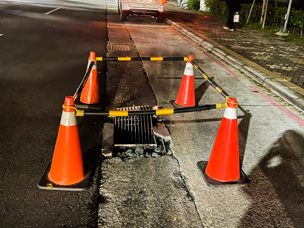 ▲將側溝隔柵板由路中央遷移至道路最外側降低損壞率。