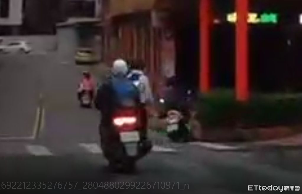 ▲網路流傳影片,機車騎士未禮讓行人,反被推了一把險些摔車。(圖/翻攝《記者爆料網》)