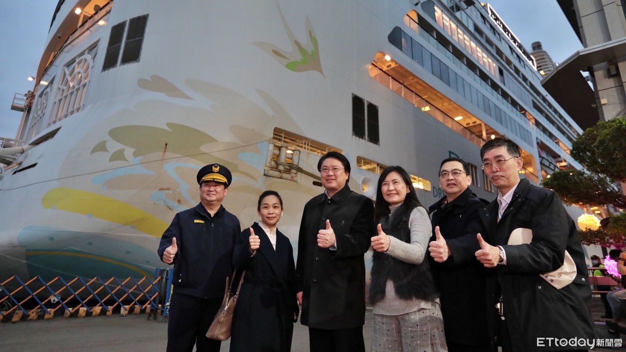 林右昌表示,基隆是郵輪母港,「探索夢號」停靠在基隆港已經好幾個月,郵輪業者也非常挺台灣跟基隆港,很高興聽到復航的消息,因此他特別在跨年夜出航之前,到旅客中心瞭解上船前的防疫工作,同時也為業者加油打氣。