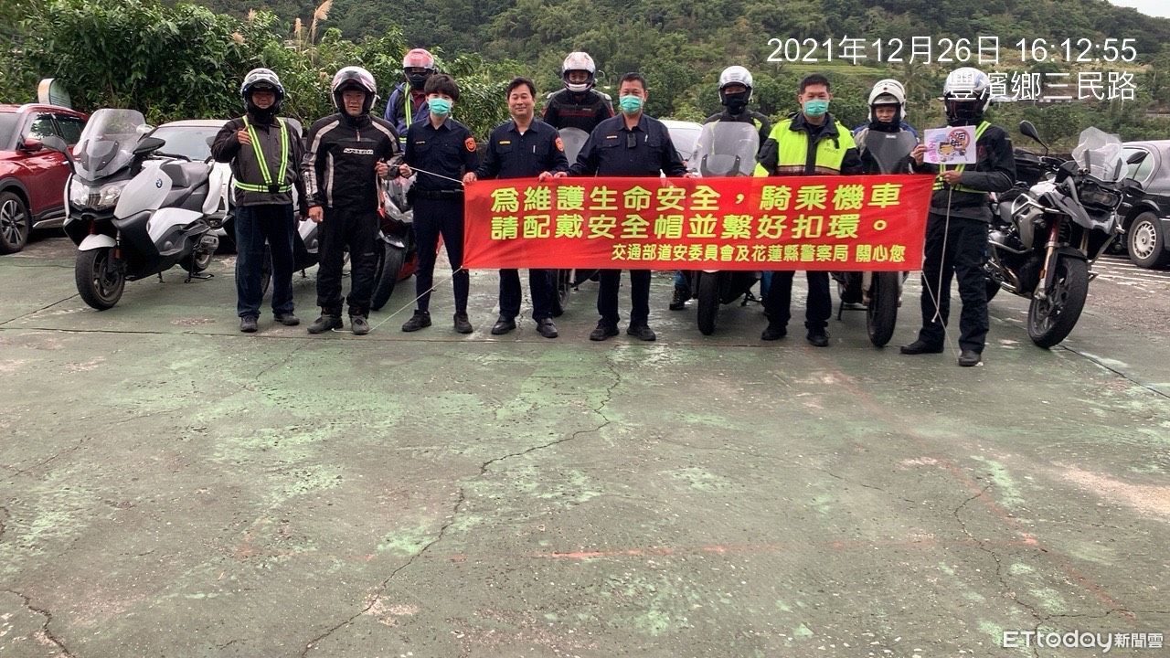 這群來自新北市的重機車隊,為一睹花東優美的山海走廊特地從台北沿著台11線長征,沿途欣賞海天一色的美景,途經花蓮縣警察局鳳林分局豐濱分駐所,因稍作休息而停駐,豐濱派出所所長楊思恆、副所長陳彥螢及同仁在所熱情的泡茶熱忱招待,並向車隊騎士宣導交通安全觀念,讓每位駕駛人深植於心,期許快樂出遊、平安返家。