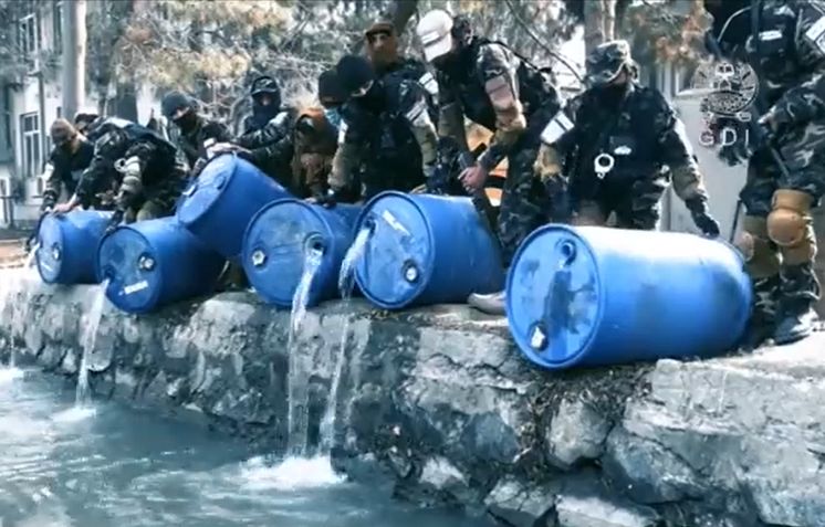 ▲塔利班宣傳禁酒將3000公升全倒進運河。(圖/翻攝自推特/@GDI1415)