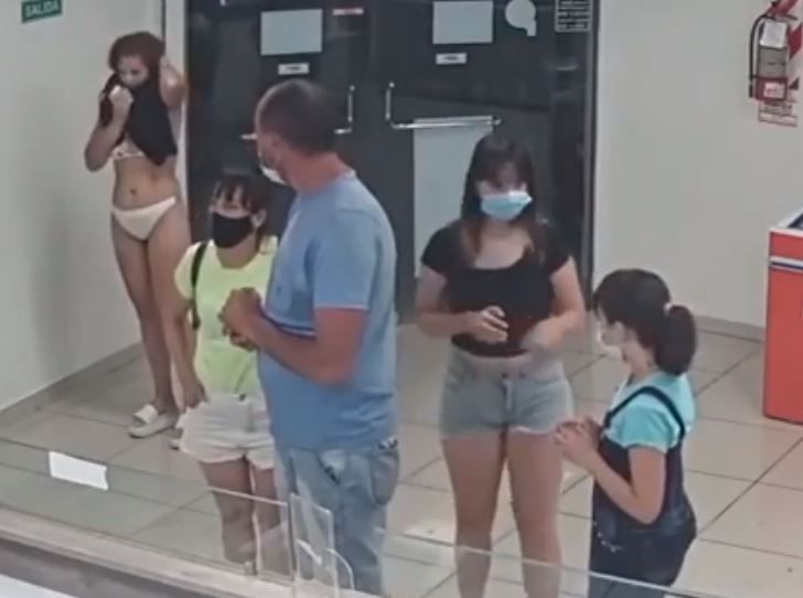 根據《每日郵報》報導,阿根廷多伊克魯茲市一名父親1日10時40分左右帶著自己的3個孩子到一家冰淇淋店買東西時,突然有一名全身只穿著一套白色內衣褲且沒有戴口罩的女性闖入,讓這名地方爸爸當場震驚地不知道看哪裡。
