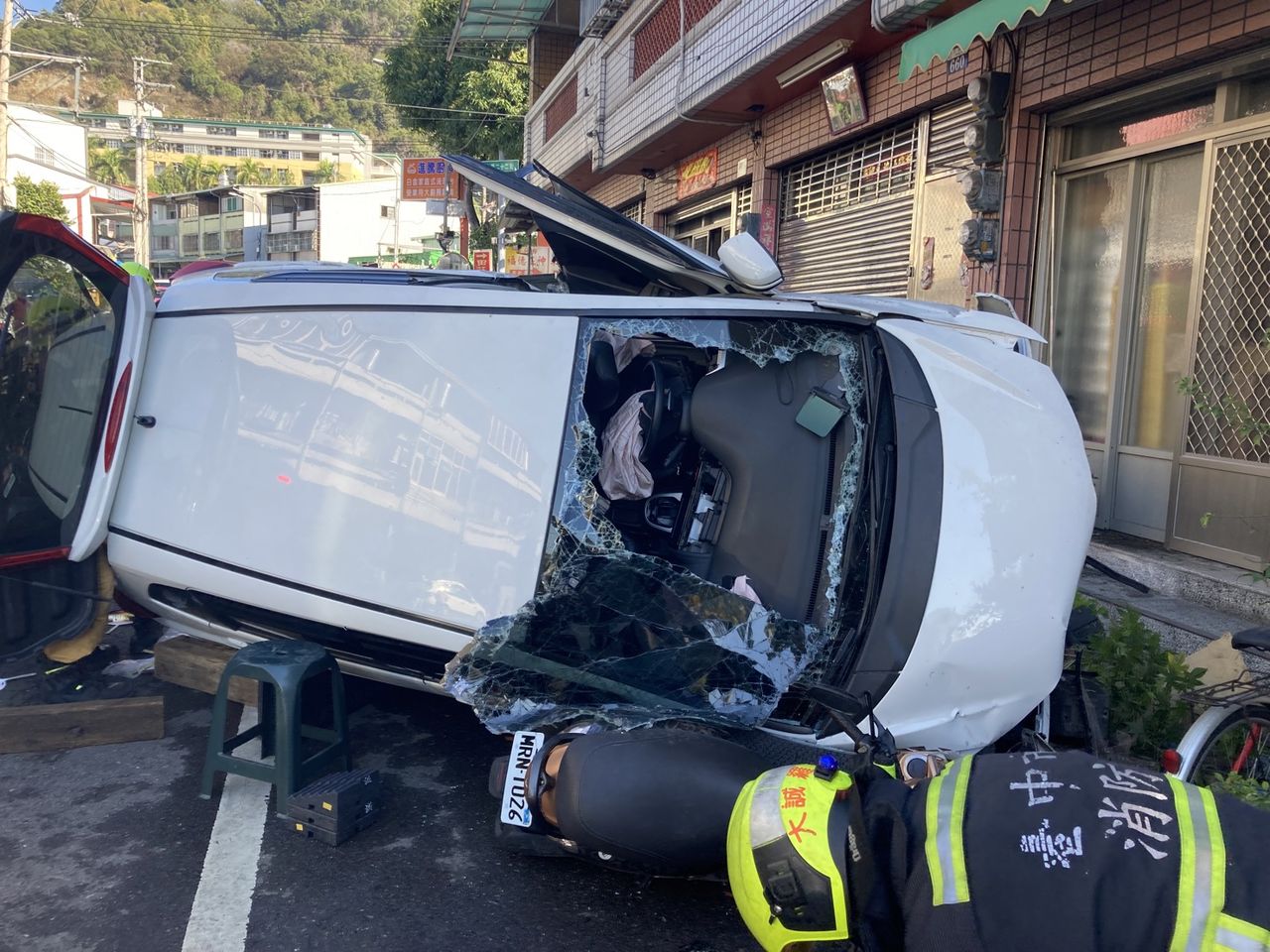台中市太平區大興路下午1點半發生一起翻車意外,一輛68歲的張姓婦人,駕駛白色休旅車,車內載有68歲和71歲的郭姓婦人,張女疑似要從對向車道超車,不料對向卻有機車,張女為了閃避竟失控翻覆,3名婦人一度受困車內,警消到場協助3人脫困,並送往國軍803醫院救治,其中張姓女駕駛ohca送醫救治,已恢復心跳,另2人受傷,全案正調查中。