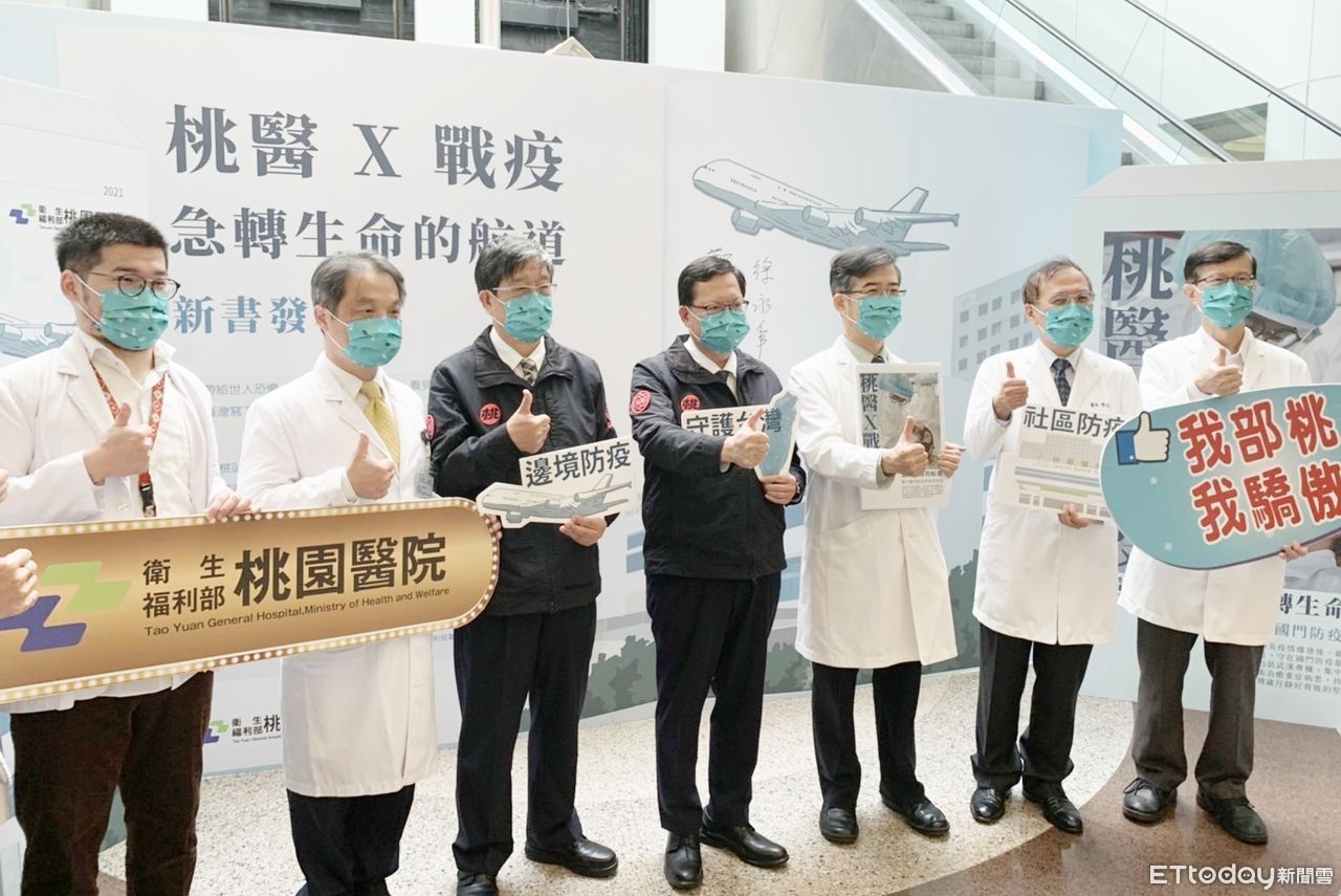 ▲衛福部立桃園醫院4日舉辦「桃醫X戰疫:急轉生命的航道」新書發表會」,市長鄭文燦為徐永年院長率領醫療團隊加油打氣。(圖/記者沈繼昌攝)