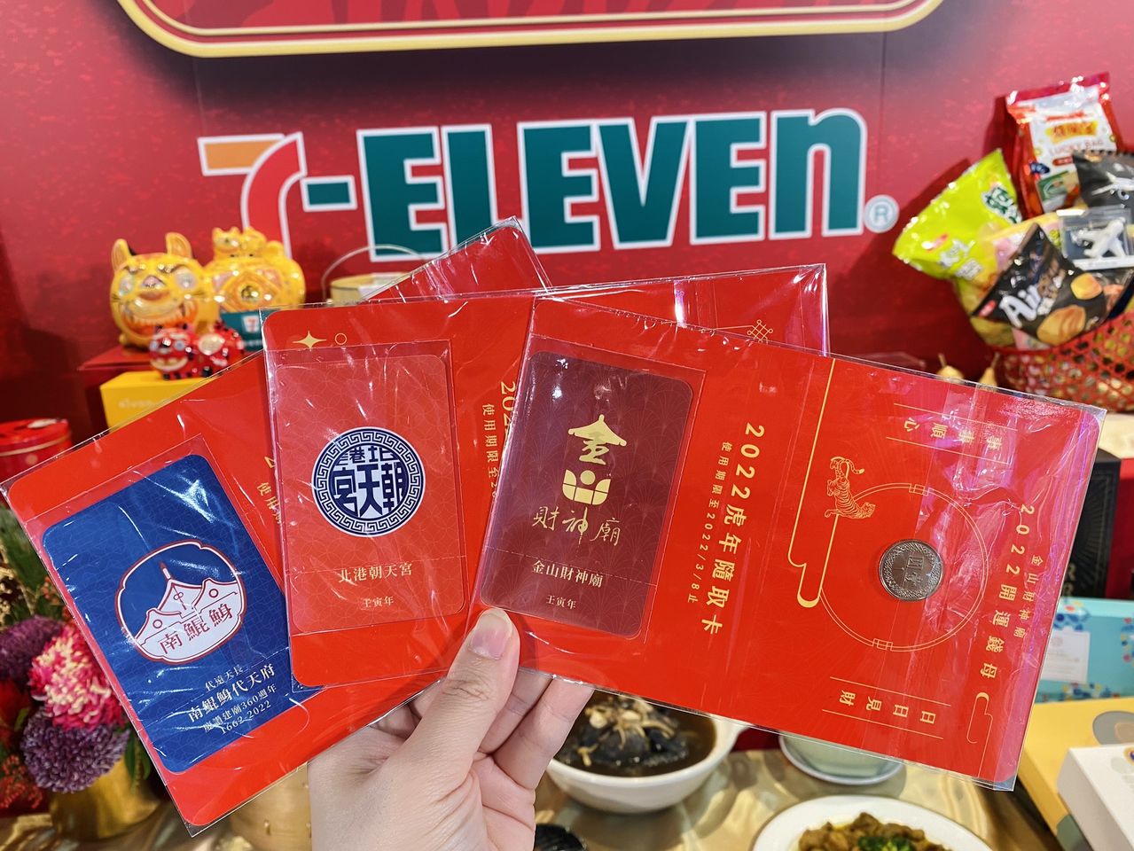 7-11這次攜手金山財神廟、北港朝天宮以及南鯤鯓代天府,推出「限量福虎生風隨取卡組」,每組售價500元,可直接獲得550元面額的隨取卡,新的一年免試手氣,保證100%放大面額,1/7起正式開賣。